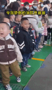 一名小男孩認(rèn)出消防員爸爸后