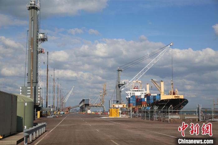 記者在港區(qū)看到,港區(qū)堆滿集裝箱,一臺懸吊機(jī)械正在往輪船上吊裝有中文字樣的中海運集裝箱,港區(qū)內(nèi)海上補(bǔ)給中心的幾艘輪船正在進(jìn)行補(bǔ)給,散貨堆場內(nèi)成堆的鋰礦正在等待裝船出口中國,碧波蕩漾的城市郵輪碼頭已初具規(guī)模。