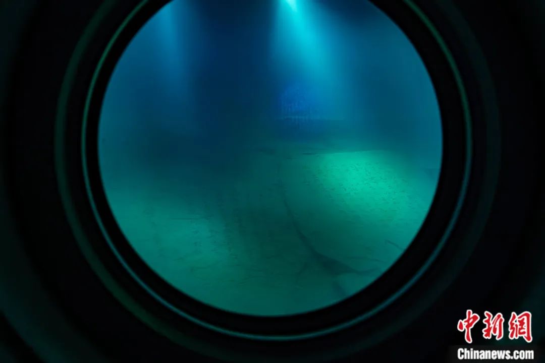 游客在白鶴梁水下博物館通過觀測窗口觀賞水下題刻。何蓬磊 攝