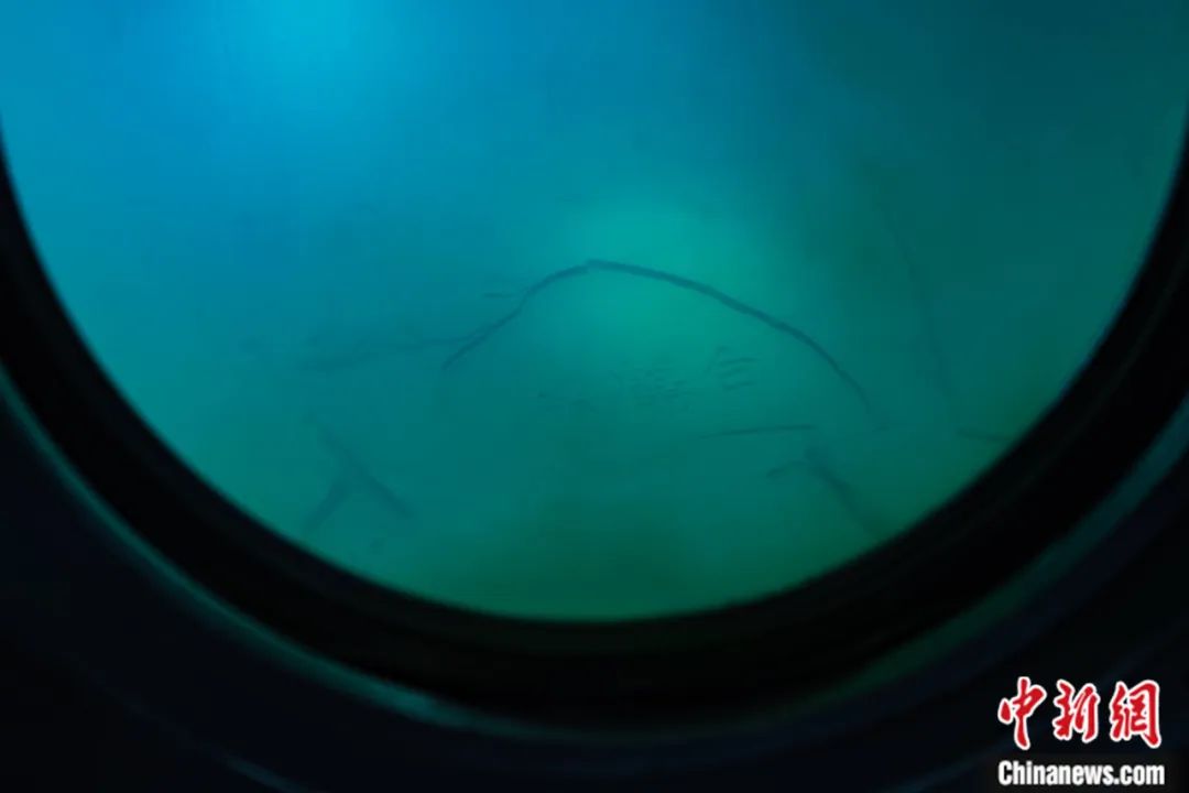 通過白鶴梁水下博物館觀測窗口拍攝的水下題刻。何蓬磊 攝