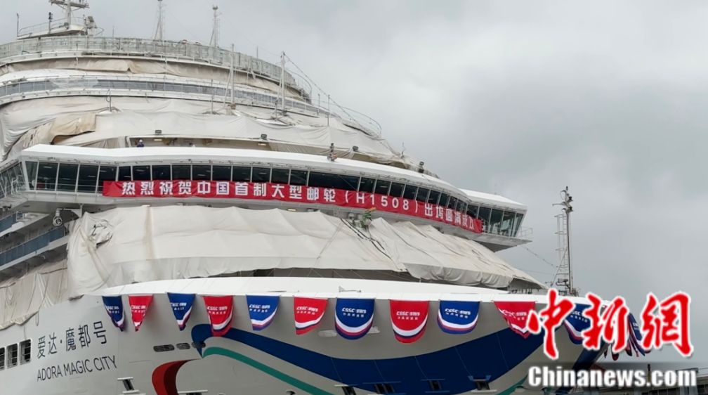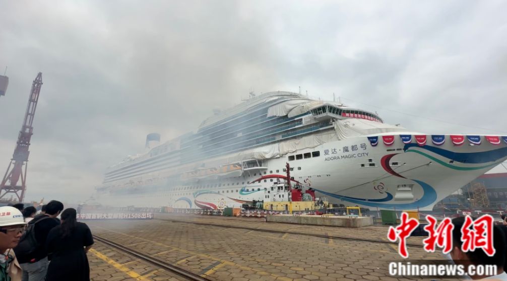看,這艘身系“敦煌飛天彩帶”楚楚動人的我國首艘國產大型郵輪“愛達·魔都”號,今日盛裝出塢!