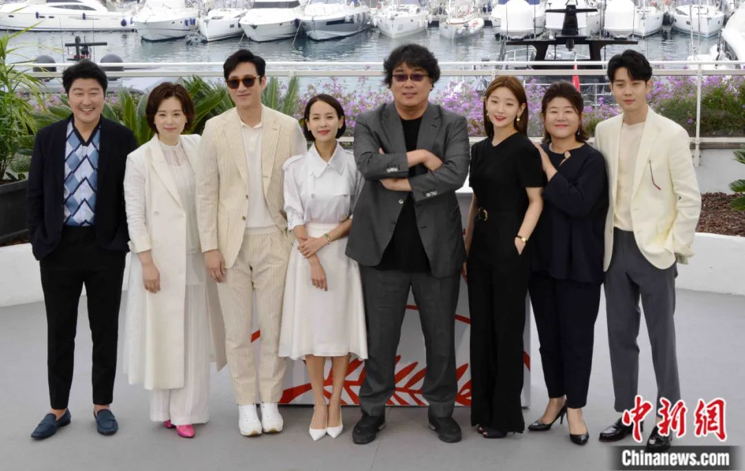 韓國影片《寄生蟲》主創(chuàng)團隊亮相第72屆戛納電影節(jié)。李洋 攝