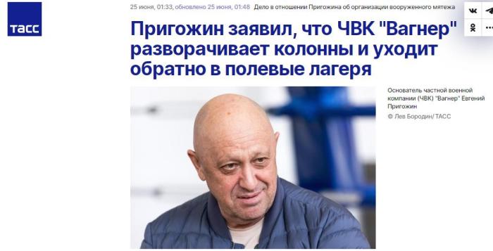 中新網(wǎng)6月25日電 綜合塔斯社、法新社、CNN等外媒報道,當(dāng)?shù)貢r間24日,“瓦格納”集團(tuán)負(fù)責(zé)人普里戈任在社交媒體上發(fā)聲,稱“瓦格納”將調(diào)轉(zhuǎn)方向返回營地。