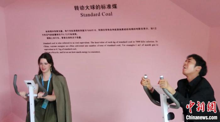 在華留學(xué)生體驗(yàn)“低碳城市”展廳互動(dòng)產(chǎn)品。 唐煒妮 攝