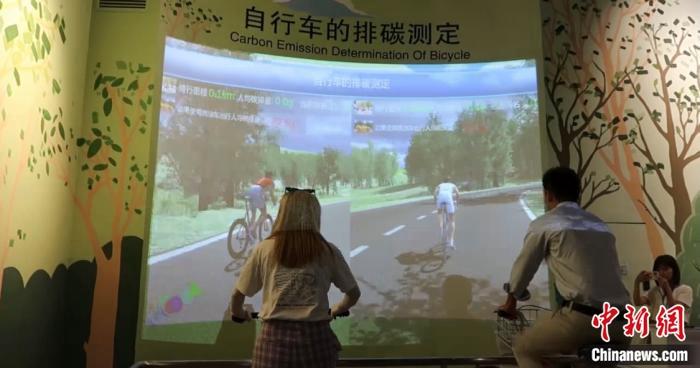 在同樓層的“低碳城市”展廳,則設(shè)置了自行車、汽車、飛機(jī)等交通工具碳排量測(cè)定互動(dòng)展品,旨在讓觀眾通過(guò)體驗(yàn)與生活休戚相關(guān)的低碳產(chǎn)品,自覺(jué)加入低碳生活的行列。