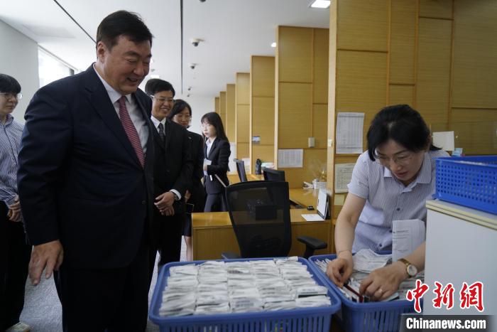 當?shù)貢r間7日,中國駐韓國大使邢海明赴首爾中國簽證申請服務(wù)中心調(diào)研。圖為邢海明(右三)考察中心。中新社記者 劉旭 攝