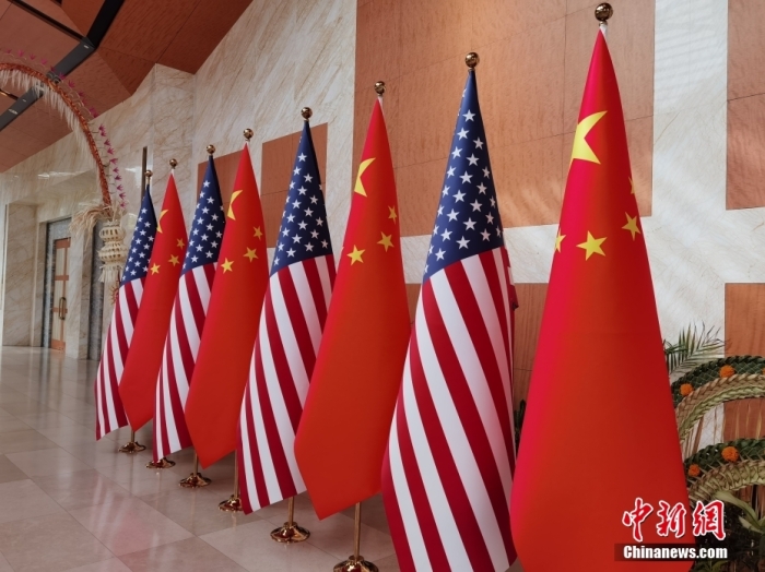 2022年11月,中美兩國(guó)元首在印尼巴厘島舉行會(huì)晤。圖為會(huì)場(chǎng)外擺放的中美兩國(guó)國(guó)旗。 郭金超 攝
