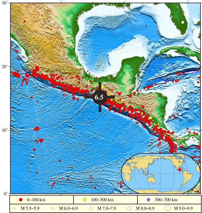 墨西哥恰帕斯州沿岸近海附近發(fā)生6.5級左右地震