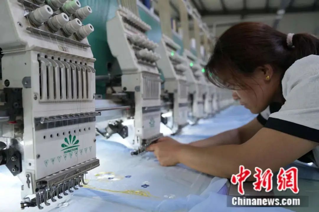 今年以來,漢服生產(chǎn)需求激增,用當(dāng)?shù)厣碳业脑捳f,“每天吵醒的不是鬧鐘而是訂單聲”,工人們?yōu)榱粟s制漢服經(jīng)常加班到凌晨?jī)扇c(diǎn)鐘。