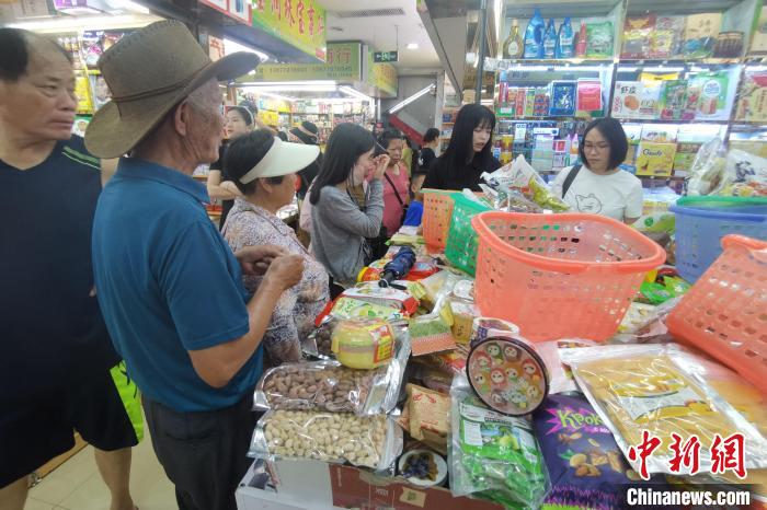 近日,東興國門景區(qū)里的東南亞特產(chǎn)商鋪受游客青睞?!≈行律缬浾?翟李強 攝