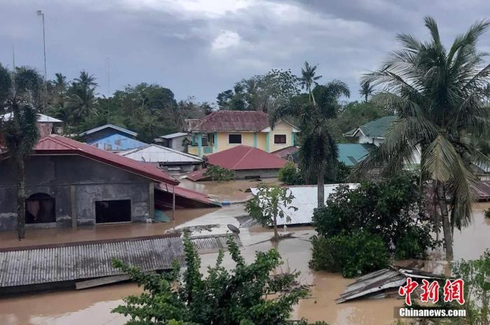 臺風(fēng)“杜蘇芮”于當(dāng)?shù)貢r間7月26日相繼在菲律賓卡加延省富加島和達盧皮里島登陸,帶來強降雨。圖為當(dāng)?shù)貢r間7月27日,菲律賓卡加延河谷大區(qū)卡加延省阿布盧鎮(zhèn),洪水已淹至部分民房房頂。中新社發(fā) 菲律賓卡加延省信息辦公室供圖