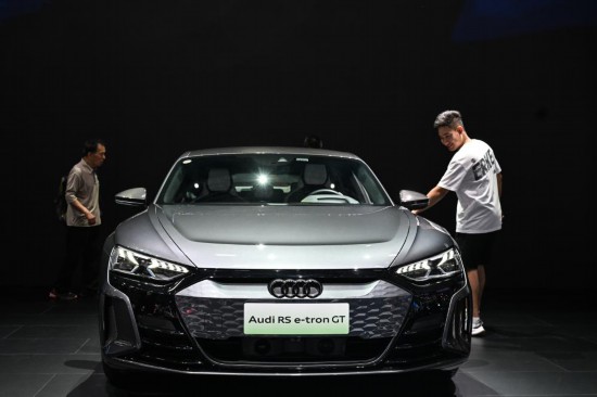 觀眾在長春汽博會上的一汽-大眾奧迪展位參觀(7月20日攝)。(新華社記者顏麟蘊攝)
