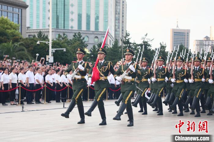8月1日清晨,南昌八一廣場上人山人海,站滿前來觀看升國旗儀式的民眾。姜濤 攝