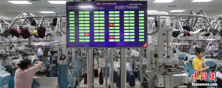 以縫頭為例,在一體化襪機(jī)之前,傳統(tǒng)的手工縫頭需要人工操作,效率很低,更新為襪機(jī)后,成本降低了至少一半。而智能系統(tǒng)端,機(jī)器的效率則被更加量化地體現(xiàn)在大屏幕上,一目了然,哪臺(tái)襪機(jī)出現(xiàn)問(wèn)題,車(chē)間數(shù)據(jù)顯示屏就能看到,避免生產(chǎn)出次品襪子造成浪費(fèi)。