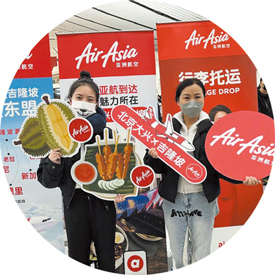 在馬來(lái)西亞吉隆坡國(guó)際機(jī)場(chǎng),工作人員歡迎中國(guó)游客。