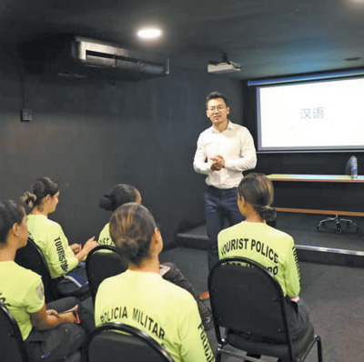 巴西里約旅游警察參加中文培訓(xùn)班。