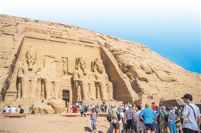 埃及熱門景點(diǎn)阿布辛貝神廟外游人如織。