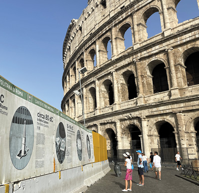 在意大利羅馬熱門景點(diǎn)斗獸場(chǎng),游客正在閱讀帶有中文解說(shuō)的標(biāo)識(shí)牌。