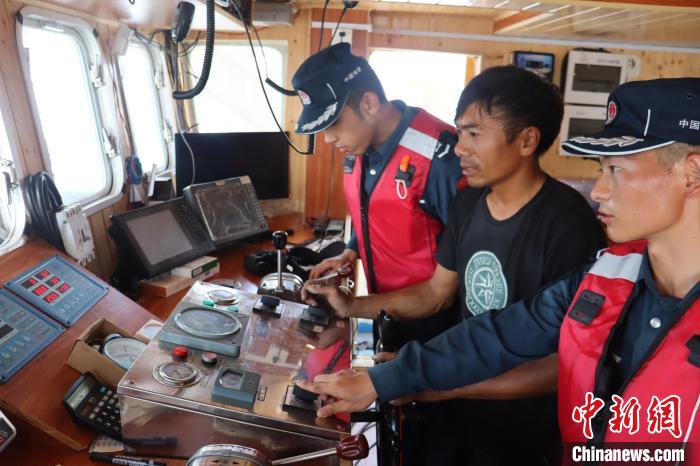 海警執(zhí)法員對漁船導(dǎo)航儀器設(shè)備進(jìn)行檢查。蔡曉曄 攝