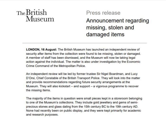 奧斯本稱,“對于所有熱愛大英博物館的人來說,這是悲傷的一天,但我們決心糾正錯誤,并利用這次經驗來建設一個更強大的博物館。”