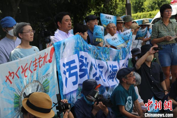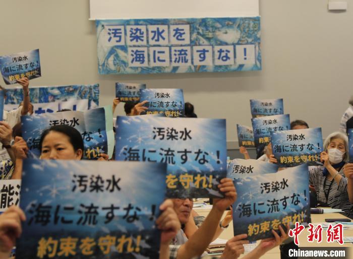 8月18日,日本民眾在日本參議院議員會館舉行集會,要求政府遵守當(dāng)初作出的不擅自處置核污染水的承諾,撤回核污染水排海計(jì)劃。中新社記者 朱晨曦 攝