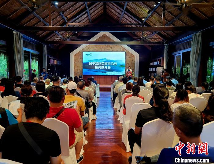 保亭縣向來訪臺灣同胞介紹當(dāng)?shù)亻_發(fā)投資項目?!⊥鯐员?攝