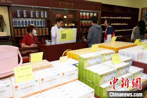 當?shù)貢r間9月1日,加拿大多倫多,北京同仁堂位于大多倫多地區(qū)的第四家分店在安大略省列治文山(Richmond Hill)市開業(yè)。圖為當?shù)仡櫩驮谠撻T店詢購中藥。 中新社記者 余瑞冬 攝