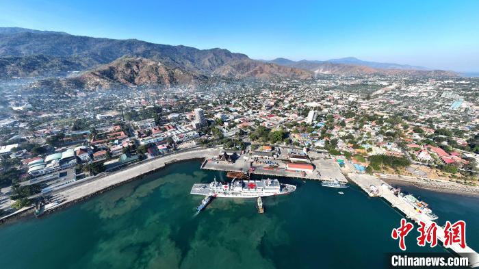 9月3日上午,正在執(zhí)行“和諧使命-2023”任務(wù)的中國(guó)海軍“和平方舟”號(hào)醫(yī)院船抵達(dá)東帝汶帝力港,開(kāi)始為期7天的友好訪問(wèn)和醫(yī)療服務(wù)。圖為醫(yī)院船靠泊東帝汶帝力港碼頭。桂江波 攝