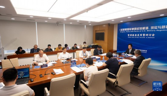 9月5日,新華社國(guó)家高端智庫(kù)面向全球、多語(yǔ)種發(fā)布《起底美國(guó)軍事霸權(quán)的根源、現(xiàn)實(shí)與危害》智庫(kù)報(bào)告,并舉行專家研討會(huì)。新華社記者 才揚(yáng) 攝