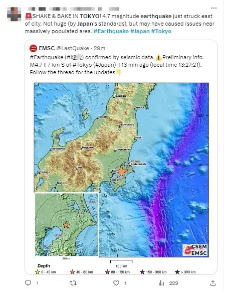 還有網(wǎng)友表示東京有震感,“現(xiàn)在在東京,剛剛的地震把我們嚇壞了!”
