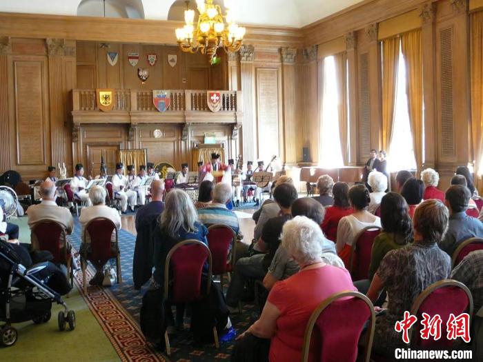 2008年9月25日,上海城隍廟道教樂團(tuán)在英國利茲市政廳演出現(xiàn)場(chǎng)。 (上海市道教協(xié)會(huì)供圖)