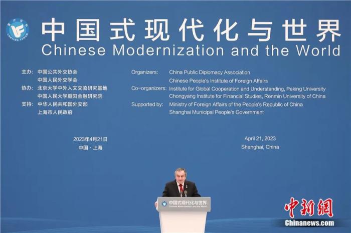 2023年4月21日,“中國式現(xiàn)代化與世界”藍(lán)廳論壇在上海“世界會(huì)客廳”舉辦,沙拉夫出席論壇開幕式并致辭。殷立勤 攝