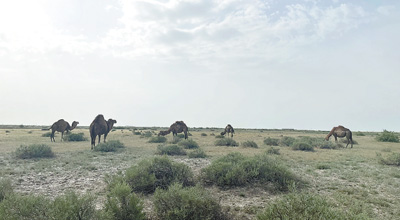 駱駝養(yǎng)殖戶努爾馬哈木別特的牧場(chǎng)里一片生機(jī)勃勃。