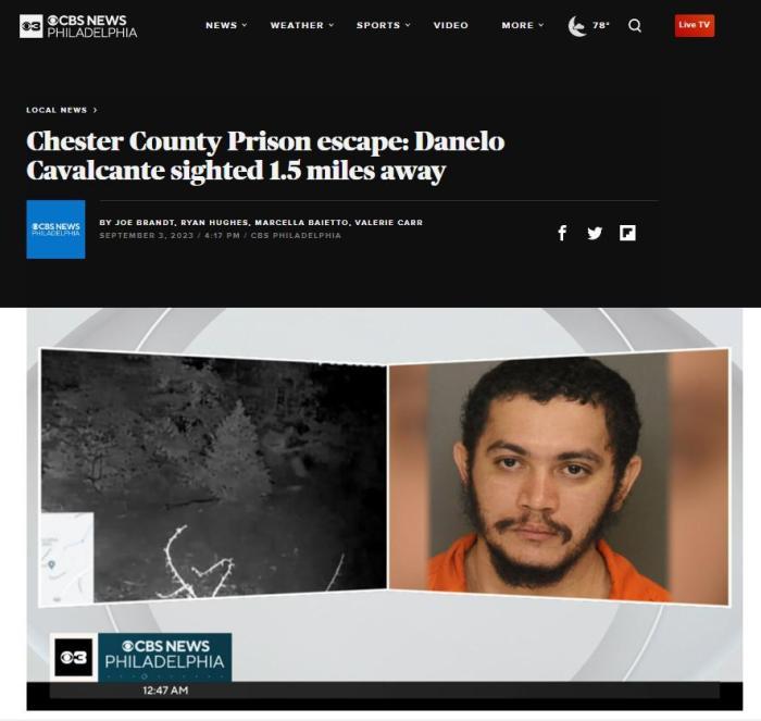據(jù)報道,當?shù)貢r間8月31日上午8時45分左右,卡瓦爾坎特從賓夕法尼亞州切斯特縣監(jiān)獄越獄,該地距離費城約有1小時車程。自其越獄后,已多次被監(jiān)控拍到,也有目擊者見到過他。