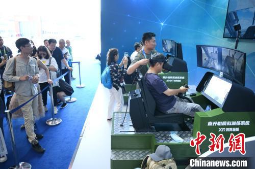 9月14日,與會者在展位體驗直升機模擬訓(xùn)練系統(tǒng)。當(dāng)日,第六屆中國天津國際直升機博覽會在天津市空港經(jīng)濟區(qū)開幕。為期四天的博覽會吸引了來自全球20多個國家和地區(qū)的350余家直升機企業(yè)齊聚津門。 佟郁 攝