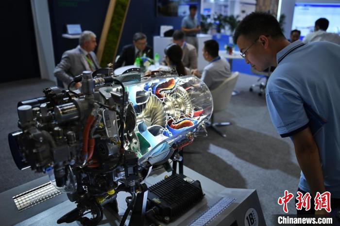 9月14日,與會者參觀直升機發(fā)動機結(jié)構(gòu)展示。當(dāng)日,第六屆中國天津國際直升機博覽會在天津市空港經(jīng)濟區(qū)開幕。為期四天的博覽會吸引了來自全球20多個國家和地區(qū)的350余家直升機企業(yè)齊聚津門。 佟郁 攝