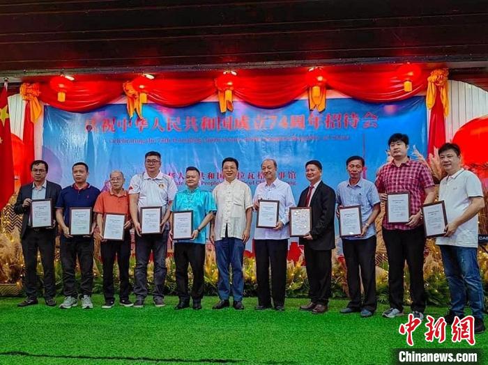 圖為招待會(huì)現(xiàn)場舉行領(lǐng)事保護(hù)志愿者頒獎(jiǎng)儀式。中國駐拉瓦格領(lǐng)事館供圖