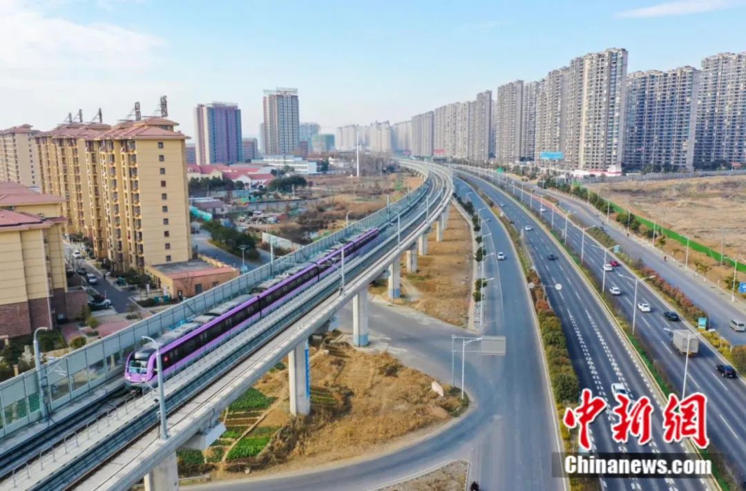 航拍運行中的S6號線(寧句城際)。鐘學滿 攝