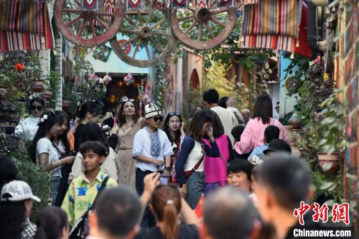 正值中秋國慶假期,位于中國西部的新疆喀什古城景區(qū)迎來旅游高峰,成為眾多游客的出行目的地。圖為10月1日,喀什古城景區(qū)里絡(luò)繹不絕的游客。 中新網(wǎng)記者 孫亭文 攝