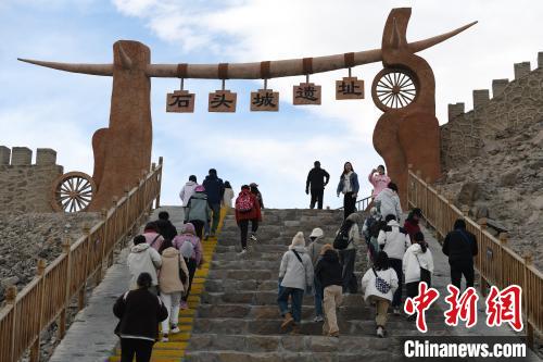 圖為10月2日拍攝的位于帕米爾高原上的塔什庫爾干縣石頭城遺址參觀的游客?!≈行戮W(wǎng)記者 孫亭文 攝