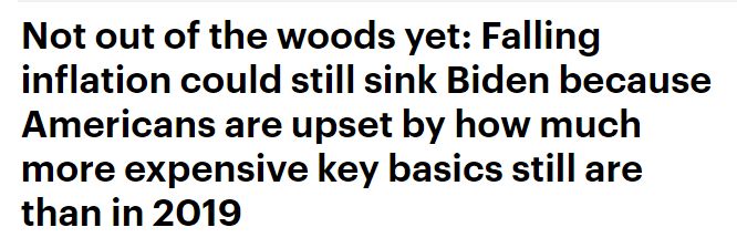 報道援引美國數(shù)字新聞網(wǎng)站(Axios)的民調(diào)稱,美國民眾對本國經(jīng)濟的看法十分糟糕。這其中很重要的原因就是,民眾在日常生活中更關(guān)注所需商品的絕對價格,而這一價格目前依然過高。盡管近期美國通脹率有所下降,但商品價格還在上漲,只是比以前稍慢了一些。
