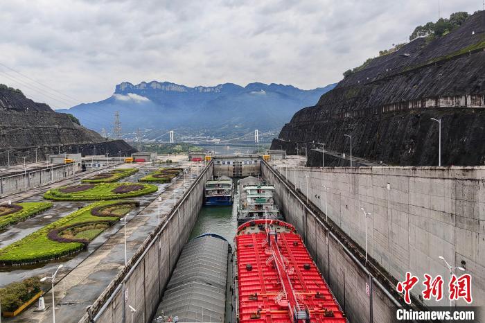 今年前三季度,三峽船閘和三峽升船機(jī)共計(jì)通過(guò)船舶3.55萬(wàn)艘次,同比上升5.98%;通過(guò)旅客33.14萬(wàn)人次,同比上升532.12%。其中,三峽船閘共運(yùn)行8340閘次,通過(guò)船舶3.2萬(wàn)艘次;通過(guò)貨運(yùn)量1.27億噸,同比增長(zhǎng)10.02%。這是三峽船閘前三季度貨運(yùn)量首次突破1.2億噸,再創(chuàng)歷史同期新高。其中8月,三峽船閘過(guò)閘貨運(yùn)量超1571萬(wàn)噸,投運(yùn)20年來(lái)首次月貨運(yùn)量超過(guò)1500萬(wàn)噸。