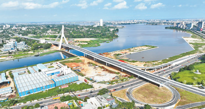 近年來,中國企業(yè)為提升非洲基礎設施水平、加速互聯(lián)互通和一體化進程、促進當?shù)亟洕鐣l(fā)展和民生改善等作出了積極貢獻。圖為中國路橋工程有限責任公司承建的科特迪瓦阿比讓科科迪斜拉橋項目。
