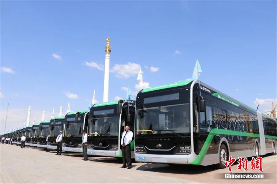 2023年7月4日,來自中國的宇通客車批量交付儀式在哈薩克斯坦首都阿斯塔納獨(dú)立廣場(chǎng)舉行。張碩 攝