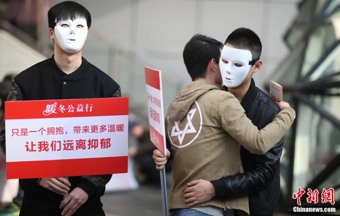 2016年1月3日,主題為“給抑郁癥患者一個(gè)擁抱”的暖冬公益行活動(dòng)在南京新街口正洪街廣場上舉行。泱波 攝