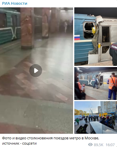 莫斯科市長(zhǎng)索比亞寧在社交媒體上稱,事故導(dǎo)致一名列車司機(jī)受傷,正在為其提供醫(yī)療救助;沒(méi)有乘客重傷。