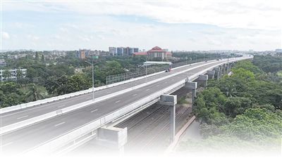 由中國山東高速集團(tuán)主導(dǎo)投資建設(shè)運營的孟加拉國首條高架快速路——達(dá)卡機(jī)場高架快速路項目(一期)通車儀式9月2日在孟加拉國首都達(dá)卡舉行。項目通車后極大改善了達(dá)卡市區(qū)交通狀況。圖為孟加拉國達(dá)卡機(jī)場高架快速路項目(一期)遠(yuǎn)景。本報記者 孫廣勇攝