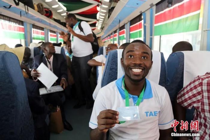 資料圖:當(dāng)?shù)貢r(shí)間2017年5月31日,蒙巴薩至內(nèi)羅畢標(biāo)準(zhǔn)軌鐵路通車儀式在肯尼亞蒙巴薩舉行,期間一名旅客展示自己的車票。中新社記者 宋方燦 攝