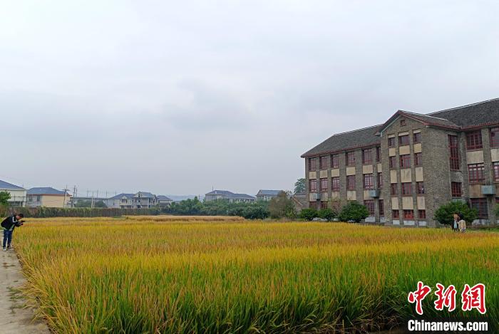 10月13日,安江農(nóng)校紀(jì)念園內(nèi),袁隆平曾發(fā)現(xiàn)水稻“天然雄性不育株”的試驗(yàn)田里,金黃的稻穗隨風(fēng)搖曳。這里如今仍是科研人員開展雜交水稻研究的“陣地”。中新社記者 鄧霞 攝