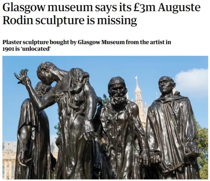 格拉斯哥博物館主管熱羅姆·勒·布萊稱,雕像丟失事件“令人遺憾”。他估計(jì),該雕像如今的價(jià)值約為300萬英鎊。
